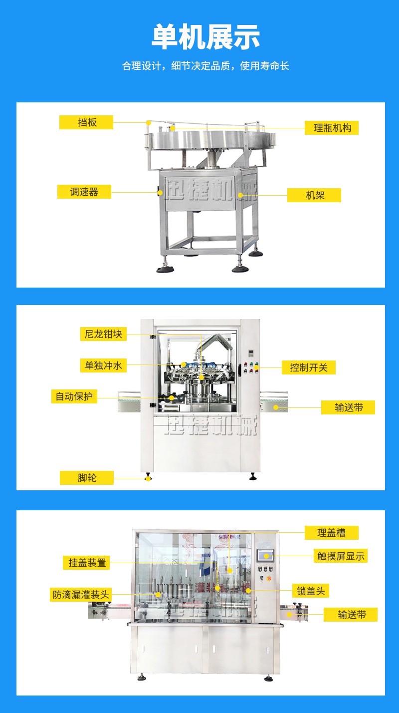 公司主要經(jīng)營兩大類產(chǎn)品:灌裝機(jī)和包裝機(jī)。其中灌裝機(jī)主要產(chǎn)品有:食用油灌裝機(jī)、液體灌裝機(jī)、膏體灌裝機(jī)、自動(dòng)灌裝機(jī)、全自動(dòng)灌裝機(jī)、辣椒醬灌裝機(jī)等;包裝機(jī)產(chǎn)品有:粉劑包裝機(jī)、顆粒包裝機(jī)、液體包裝機(jī)、自動(dòng)包裝機(jī)、真空包裝機(jī)等。